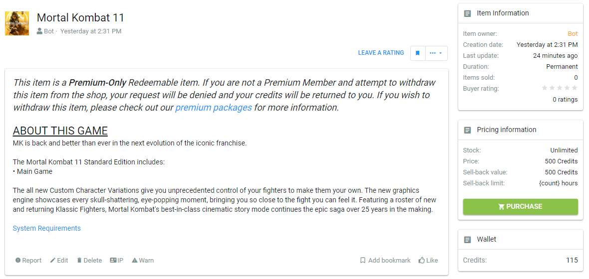 rewards tab to view the shop, choose an item that you want and click purchase. (Make sure you have enough credits in your wallet first by checking the "Wallet" tab underneath the purchase button)